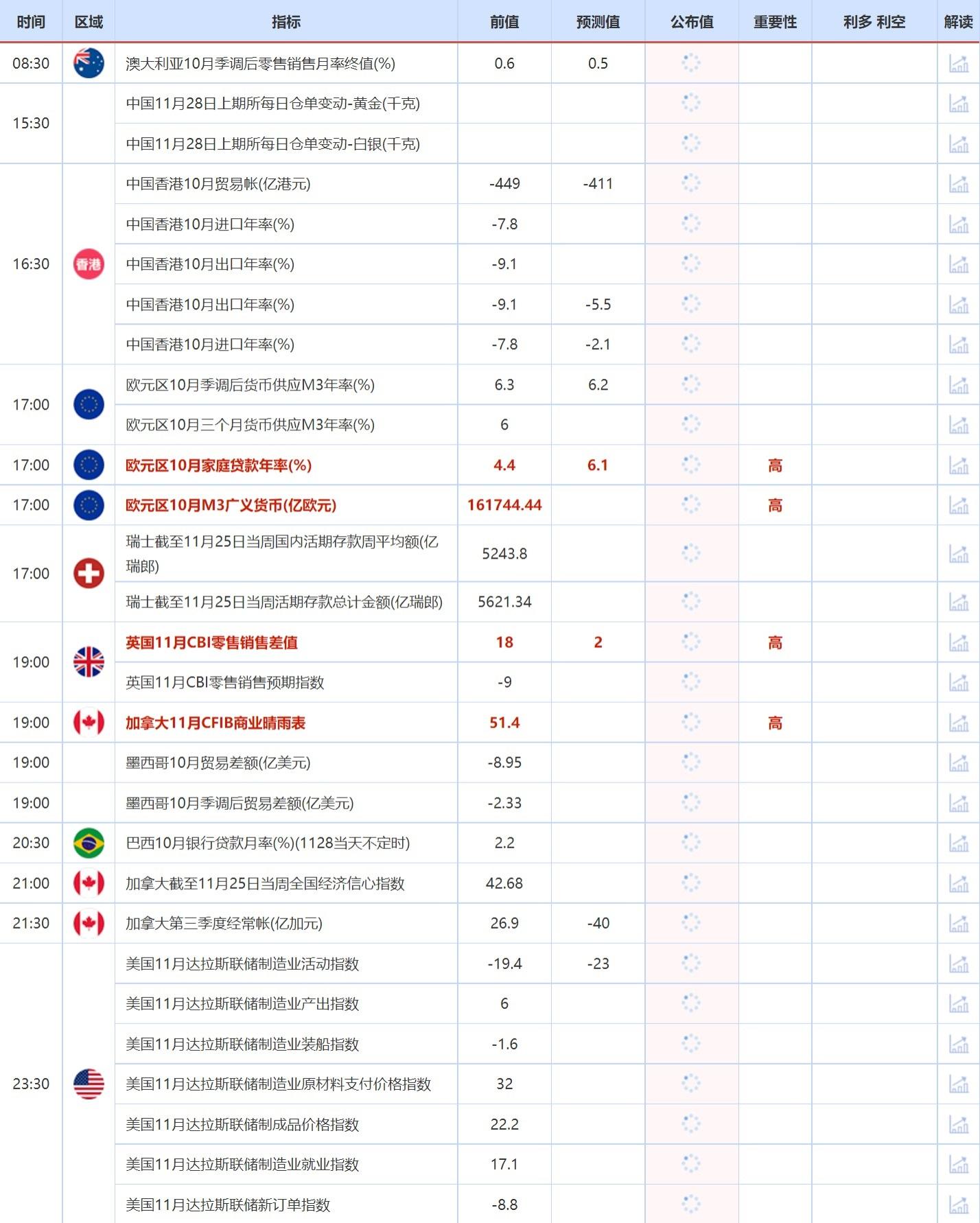 11月28日重点数据和大事件前瞻